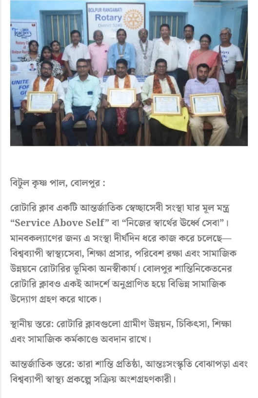 Rotary Club of Bolpur Rangamati W. Bengal - Rotary India